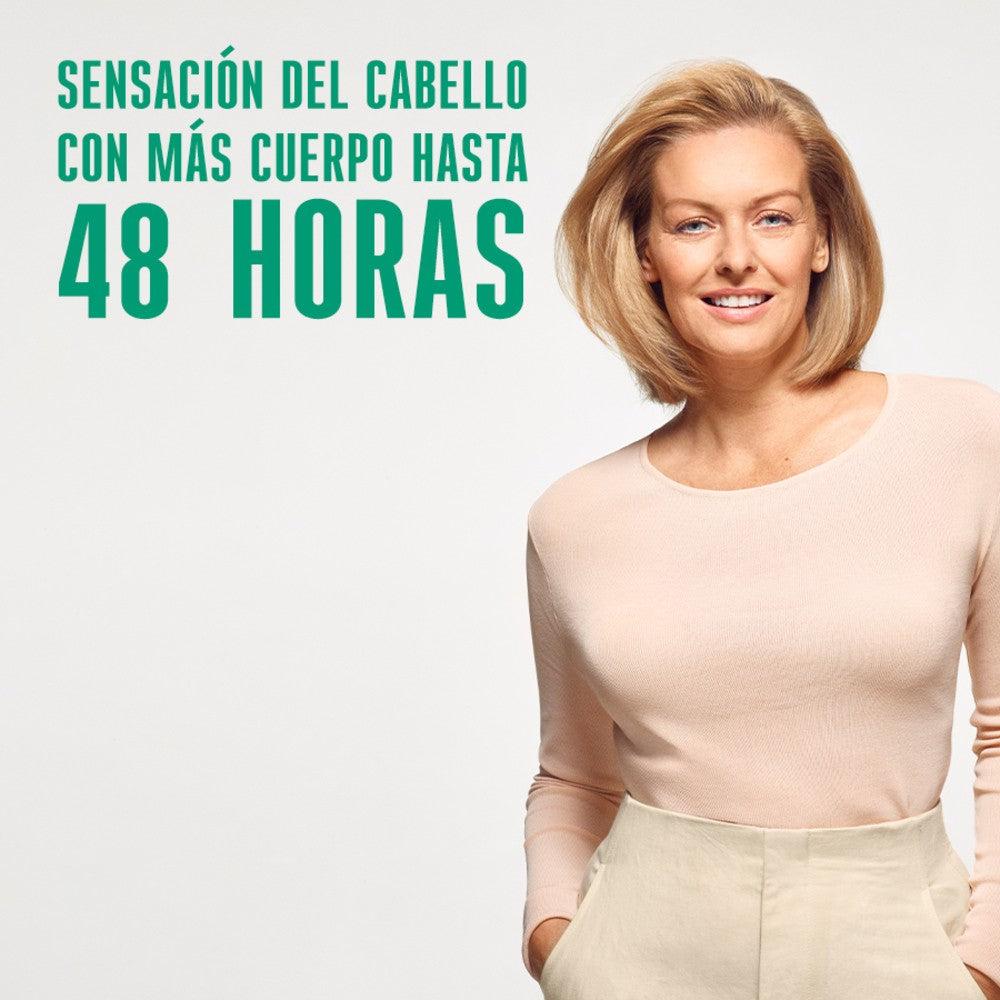 - Proporciona más volumen para una sensación de cabello con más cuerpo hasta 48 horas.